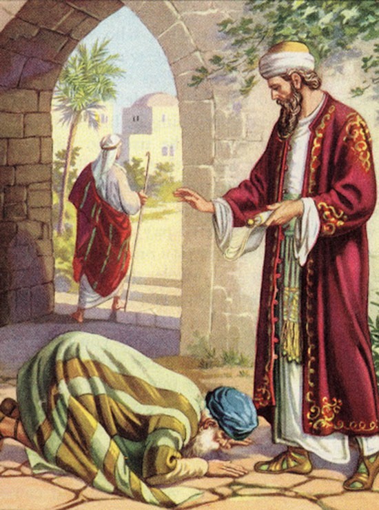 Vì thế, Nước Trời cũng giống như chuyện một ông vua kia muốn đòi các đầy tớ của mình thanh toán sổ sách. Khi nhà vua vừa bắt đầu, thì người ta dẫn đến một kẻ mắc nợ vua mười ngàn nén vàng. Y không có gì để trả, nên tôn chủ ra lệnh bán y cùng tất cả vợ con tài sản mà trả nợ. Bấy giờ, tên đầy tớ ấy sấp mình xuống bái lạy: “Thưa Ngài, xin rộng lòng hoãn lại cho tôi, tôi sẽ lo trả hết”. Tôn chủ của tên đầy tớ ấy liền chạnh lòng thương, cho y về và tha luôn món nợ. Nhưng vừa ra đến ngoài, tên đầy tớ ấy gặp một người đồng bạn, mắc nợ y một trăm quan tiền. Y liền túm lấy, bóp cổ mà bảo: “Trả nợ cho tao!” Bấy giờ người đồng bạn sấp mình xuống năn nỉ: “Thưa anh, xin rộng lòng hoãn lại cho tôi, tôi sẽ lo trả anh”. Nhưng y không chịu, cứ tống anh ta vào ngục cho đến khi trả xong nợ. Thấy sự việc xảy ra như vậy, các đồng bạn của y buồn lắm, mới đi trình bày với tôn chủ đầu đuôi câu chuyện. Bấy giờ tôn chủ cho đòi y đến và bảo: “Tên đầy tớ độc ác kia, ta đã tha hết số nợ ấy cho ngươi, vì ngươi đã van xin ta, thì đến lượt ngươi, ngươi không phải thương xót đồng bạn, như chính ta đã thương xót ngươi sao?” Rồi tôn chủ nổi cơn thịnh nộ, trao y cho lính hành hạ, cho đến ngày y trả hết nợ cho ông. Ấy vậy, Cha của Thầy ở trên trời cũng sẽ đối xử với anh em như thế, nếu mỗi người trong anh em không hết lòng tha thứ cho anh em mình”.