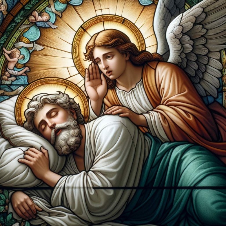 Nhưng đang khi định tâm như vậy thì thiên thần Chúa hiện đến cùng ông trong giấc mơ và bảo: "Hỡi Giuse, con vua Ðavít, đừng ngại nhận Maria về nhà làm bạn mình, vì Maria mang thai là bởi phép Chúa Thánh Thần: bà sẽ hạ sinh một con trai mà ông sẽ đặt tên là Giêsu: vì chính Người sẽ cứu dân mình khỏi tội".